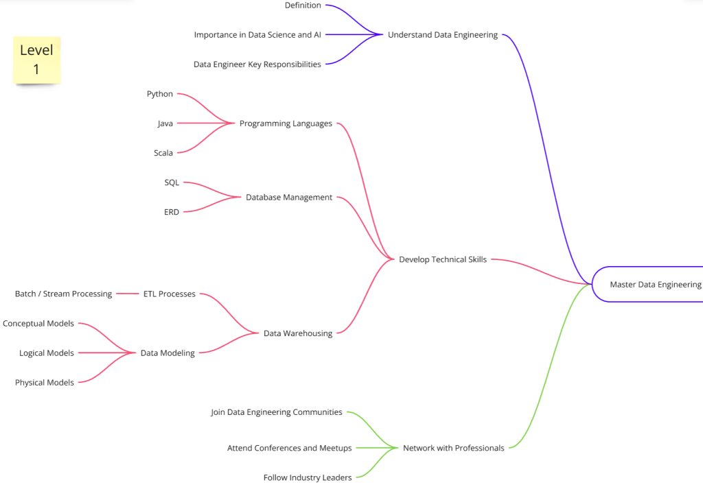 In conclusion, Mastering a field can be accomplished by following a series of organized steps followed by review and refinement. I introduced the first phase (Level 1) for mastering the data engineering field, Stay tuned for the second phase (Level 2), where we’ll dive deeper into their techniques and implications for the future.